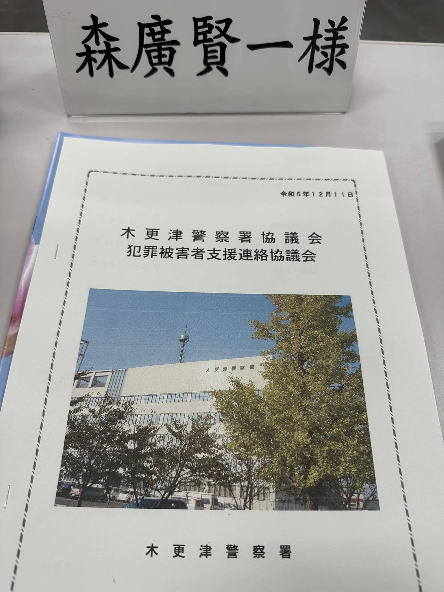 2024.12.11 千葉県損害保険代理業協会木更津支部 木更津警察署犯罪被害者支援連絡協議会 木更津警察署協議会木更津警察署犯罪被害者支援協議会合同会議2024.12.11 10:00より【議題】①犯罪の発生状況及び電話de詐欺の認知状況と手口②交通事故の発生状況等③委員からの意見•要望について警察における犯罪被害者支援について質疑•応答及び要望等警察署協議会刑法犯特殊詐欺交通事故犯罪被害者支援被害者支援対象事件発生状況犯罪被害者等に対する情報提供公費負担制度カウンセリング制度その他の被害者支援活動状況